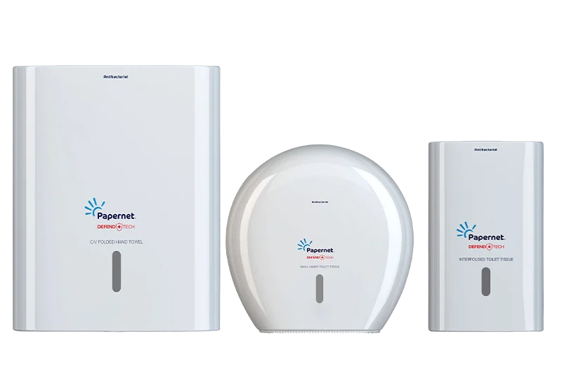 Disponemos de una moderna línea de dispensadores de celulosa, diseñados específicamente para la gana de productos de Papernet. Proporciona a la estancia una imagen de sobriedad y discreción, complementaria a las funciones higiénicas para las que se han diseñado. Fabricado en plástico ABS, material resistente y compacto, con tecnología DefendTech, un tratamiento de iones de plata que protege a los dispensadores de la contaminación bacteriana, gérmenes y otros agentes patogénicos.