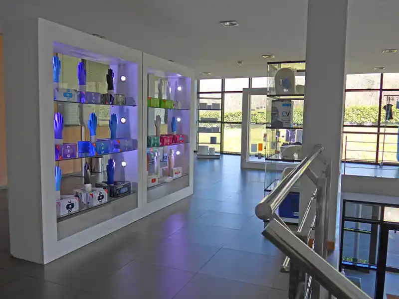 Recientemente hemos llevado a cabo una renovación de la zona de exposición en nuestras instalaciones, en Amorebieta (Bizkaia). A continuación, os dejamos algunas fotografías que muestran nuestras principales familias de productos: Guantes de examen y cirugía, ropa de protección, soluciones de higiene y desinfección de manos, sistemas de posicionamiento para pacientes y bolsas de PE y PP personalizadas.