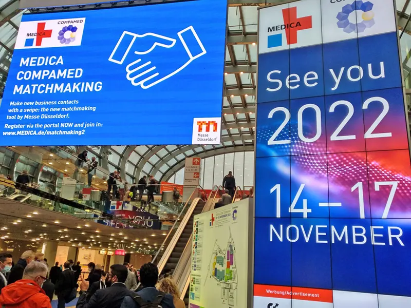 Tras 2 años sin poder asistir a la feria referente mundial del sector sanitario, debido a la situación provocada por la pandemia del Covid-19, por fin hemos podido regresar. Del 15 al 18 de noviembre de 2021, se celebraron de forma híbrida (presencial-virtual) las ferias MEDICA y COMPAMED, plataformas de información y comunicación líderes en el mundo para la industria médica, presentando una gran cantidad de innovaciones.
